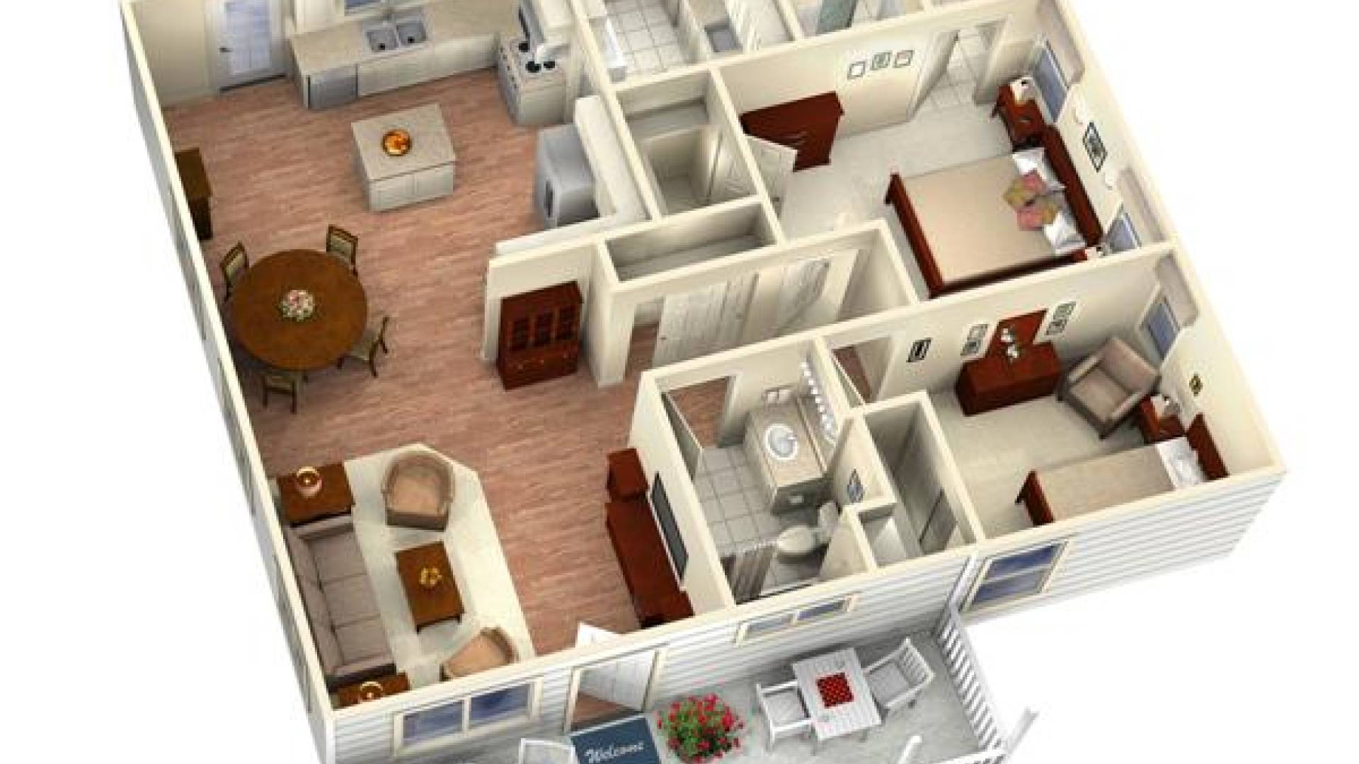 The Newport offers a spacious 1,196 square feet of living space. The front of the home boasts a generous, easily screened-in porch for sitting and enjoying the outdoors. The open-style living room and kitchen have vaulted ceilings. The kitchen is full-sized and adjoins a large laundry room with deep sink. The master bedroom is illuminated by two windows and includes a walk-in closet. Within the spacious bathroom is a walk-in shower. The Newport is designed to meet the needs of aging-in-place with a step-less entry and 36" wide doors and hallways. This pre-enginered plan makes a spacious and versatile ADU or Granny Unit. With three exterior styles (lap siding, stucco, and panel siding) the Newport can be finished to complement your lot's existing residence.